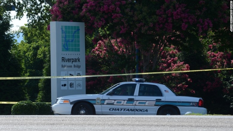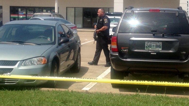 Xe cảnh sát xuất hiện tại hiện trường. Ngoài 4 người thiệt mạng, vụ tấn công làm 3 người khác bị thương bao gồm một cảnh sát, một nhà tuyển dụng và lính thủy đánh bộ. Tuy nhiên, tính mạng họ không bị đe dọa. Ảnh: CNN