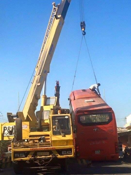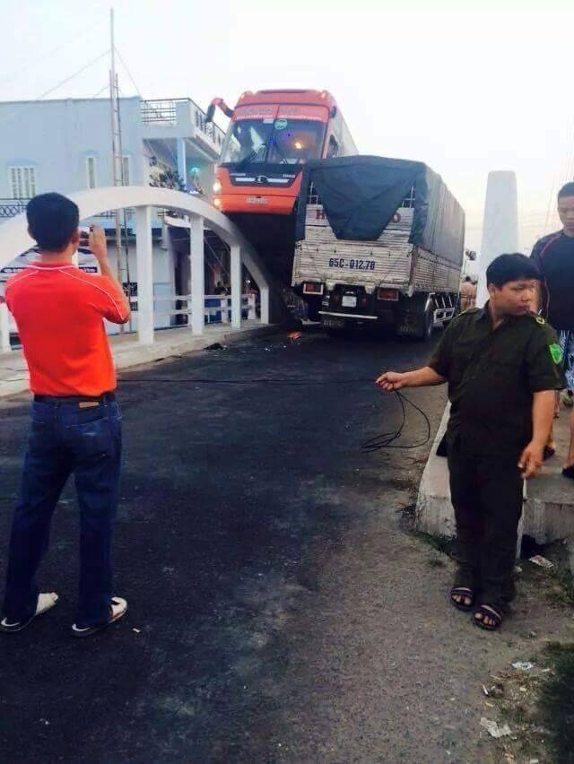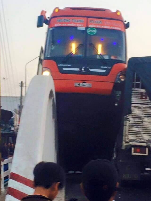 xe khách lao lên cầu