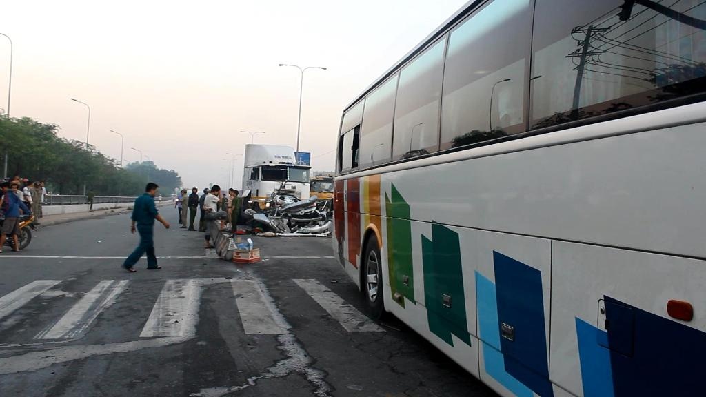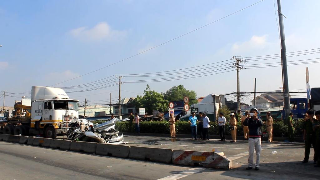 | Vụ tai nạn xảy ra lúc 4h ngày 31/5 trên quốc lộ 1A, đoạn trước khu chế xuất Linh Trung, phường Linh Trung, quận Thủ Đức, TP HCM. |