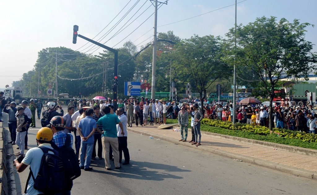 | Hàng trăm người dân tập trung tại hiện trường theo dõi vụ việc khiến tình hình khu vực hỗn loạn. |