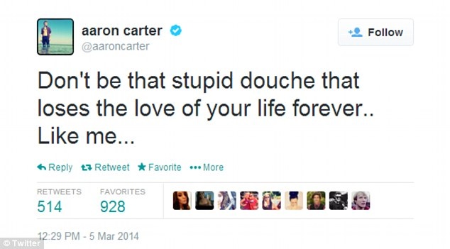 Hơn một thập kỷ trôi qua từ ngày chính thức đường ai nấy đi với Hilary Duff vào năm 2003, mới đây, nam ca sĩ Aaron Carter bất ngờ tuyên bố tình cũ là người phụ nữ hoàn hảo. Nam ca sĩ điển trai chia sẻ: "Các bạn đừng ngu ngốc đánh mất tình yêu trong đời mình mãi mãi... giống như tôi".