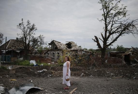 Ngôi làng ở Semenovka, miền đông Ukraina tan hoang vì đạn pháo của quân đội. Chính quyền thân phương Tây của Tổng thống Petro Poroshenko liên tiếp giành thắng lợi trước các tay súng ly khai thân Nga ở các tỉnh miền đông đất nước. Ảnh: Reuters |