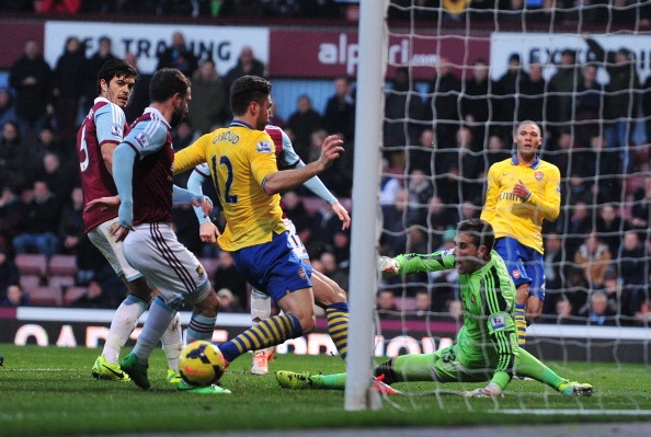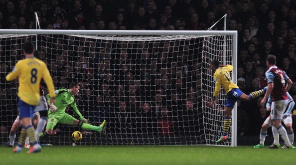 | 3 phút sau, Walcott tiếp tục cho thấy cái duyên ghi bàn vào lưới West Ham khi hoàn tất cú đúp ở phút 71. Đây là trận đấu thứ 4 liên tiếp tiền vệ người Anh xuyên thủng mảnh lưới của The Hammers. |