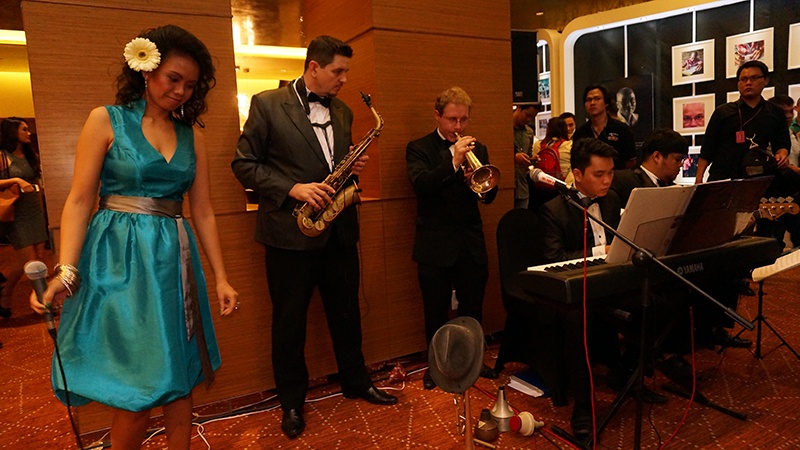 | Ca sỹ ngoại và nhạc công chơi nhạc ở khu vực bên ngoài sân khấu. |