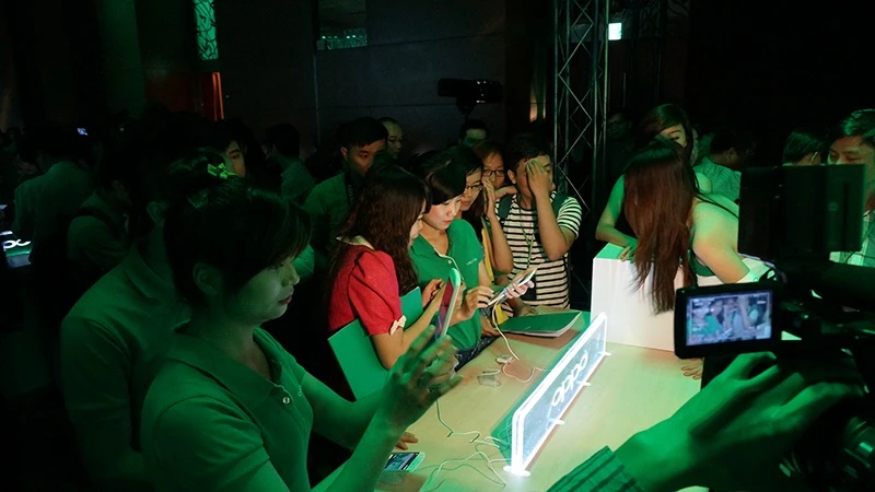 | Báo giới và khách mời được trực tiếp trải nghiệm Oppo N1. |