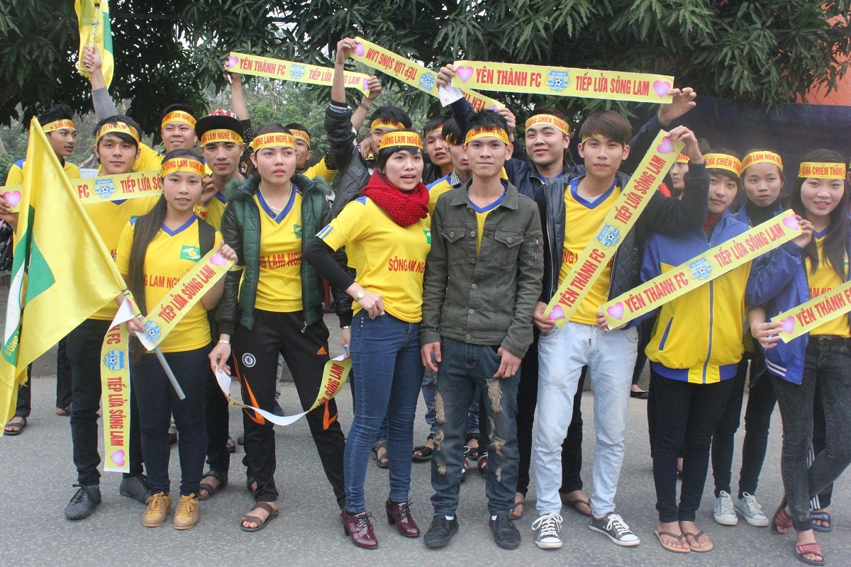 | Hội cổ động viên Yên Thành FC - một trong những thành phần "máu lửa" nhất của Hội SLNA FC - tập trung cổ vũ trận đấu đầu tiên của đội nhà trên sân Vinh mùa này. |