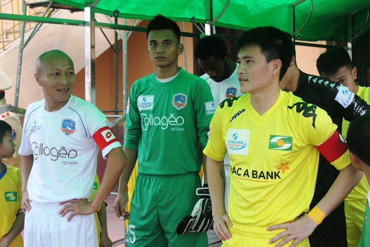 | Trong thành phần QNK Quảng Nam có nhiều cầu thủ Nghệ An. Cao Xuân Thắng - đội trưởng của QNK Quảng Nam - và Lê Công Vinh đã từng là đồng đội. |