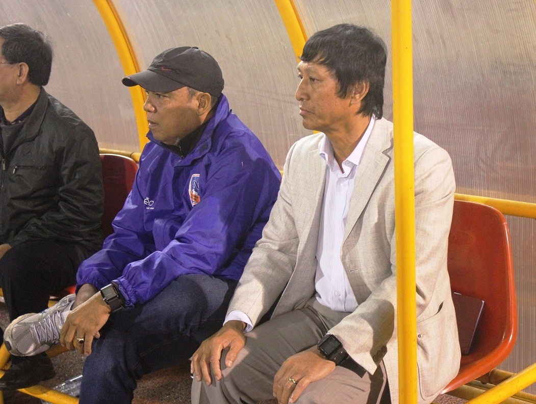 | HLV Vũ Quang Bảo (QNK Quảng Nam) đã điều chỉnh nhân sự sớm nhưng đội bóng của ông vẫn không tránh khỏi 1 trận thua đậm. |