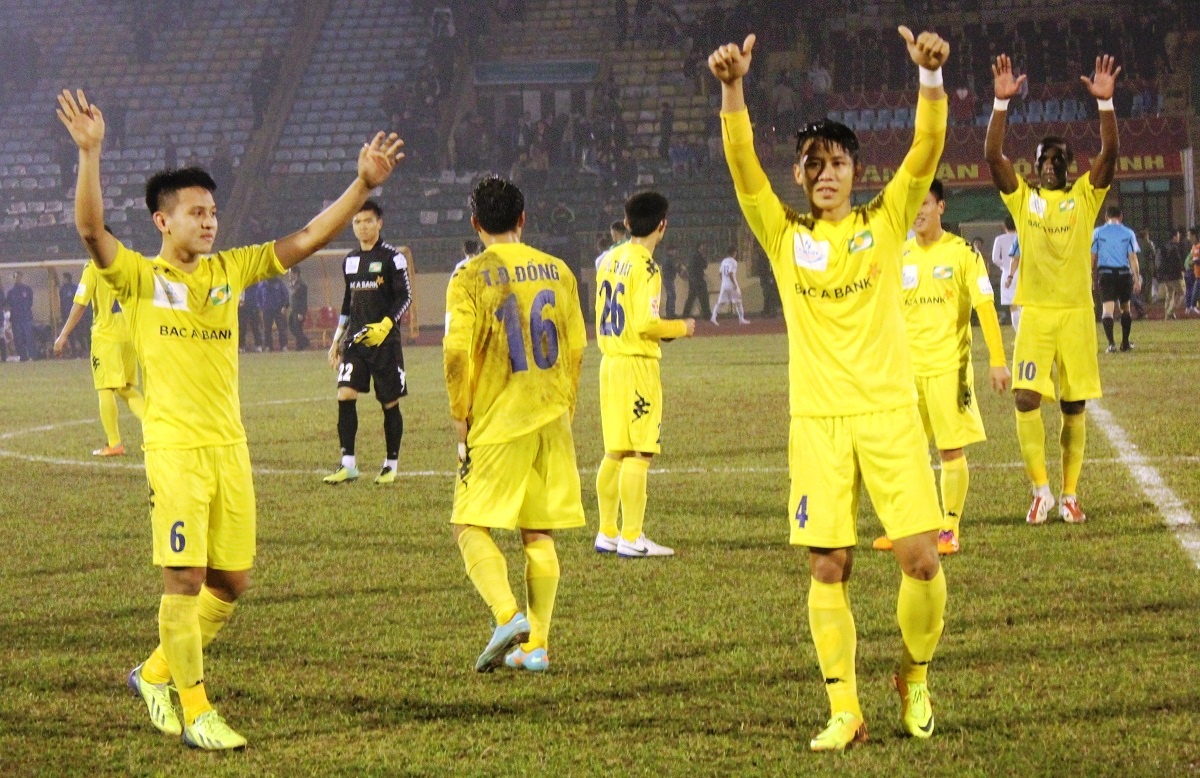 | Rất đông khán giả Nghệ An đã có mặt tại sân Vinh để cổ vũ cho SLNA. Họ đã được các cầu thủ "chiêu đãi" bằng một bữa tiệc bàn thắng. |