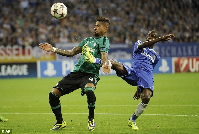 | Ramires tranh bóng quyết liệt với Kevin-Prince Boateng. |