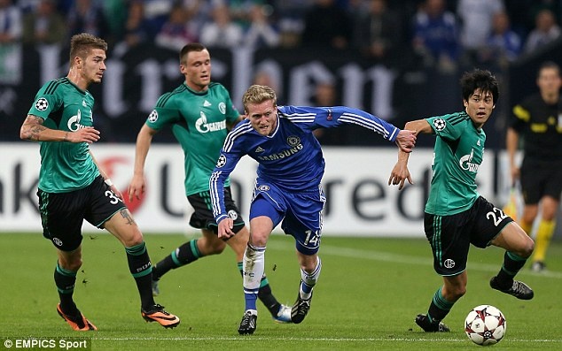 | Schurrle trong vòng vây của các cầu thủ Schalke. |