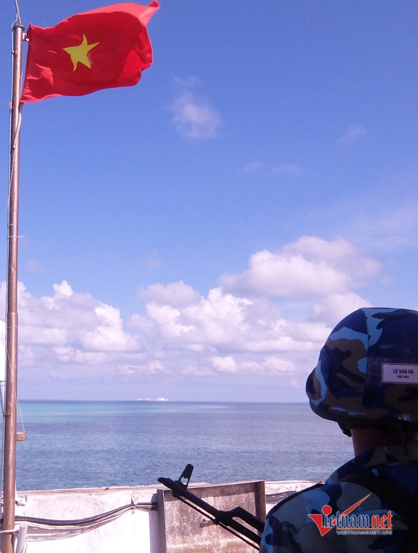 | Nhìn bằng mắt thường từ đảo Cô Lin từ khoảng cách hơn 3 hải lý, có thể thấy rõ các công trình xây dựng mở rộng trái phép của TQ trên đảo Gạc Ma. |