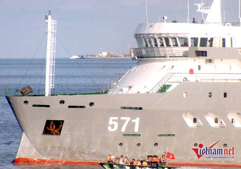 | Sau khi ngang quá bãi đá Huy Gơ, tàu Trường Sa 571 của đoàn công tác số 9 tiếp tục hành trình khoảng 15 hải lý theo hướng Tây Nam đến đảo Cô Lin, ngang qua bãi đá Gạc Ma đang bị Trung Quốc chiếm đóng trái phép và xây dựng mở rộng. |