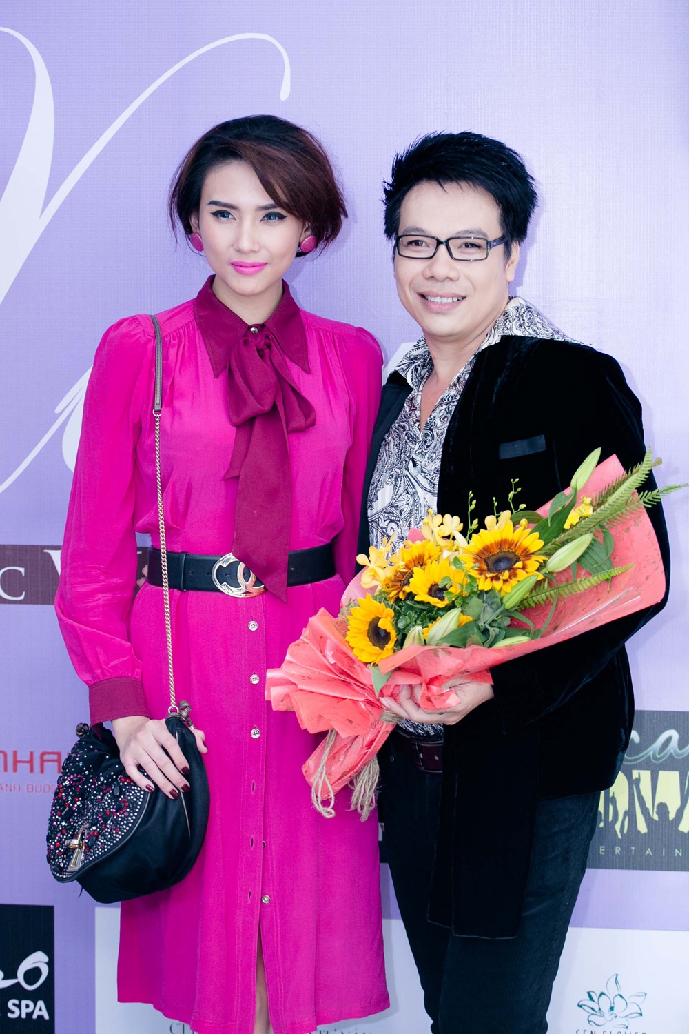 Trước khi vụ lật xe kinh hoàng xảy ra lúc nửa đêm, chiều qua 3/11, siêu mẫu trang điểm xinh đẹp, ăn mặc nổi bật cùng Hương Giang Idol đến chúc mừng nam ca sĩ Vỹ Khang phát hành album.