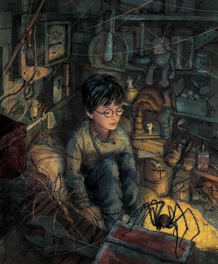 | Jim Kay được tin tưởng cho vai trò họa sĩ tranh minh họa của cuốn sách bởi những nét vẽ mộc mạc nhưng vẫn lột tả được bối cảnh câu truyện một cách chân thực nhất từ góc cầu thang nhà dì Petuina - nơi Harry trú thân cho tới những nhân vật khác trong truyện. |