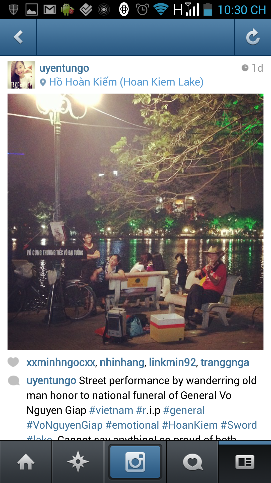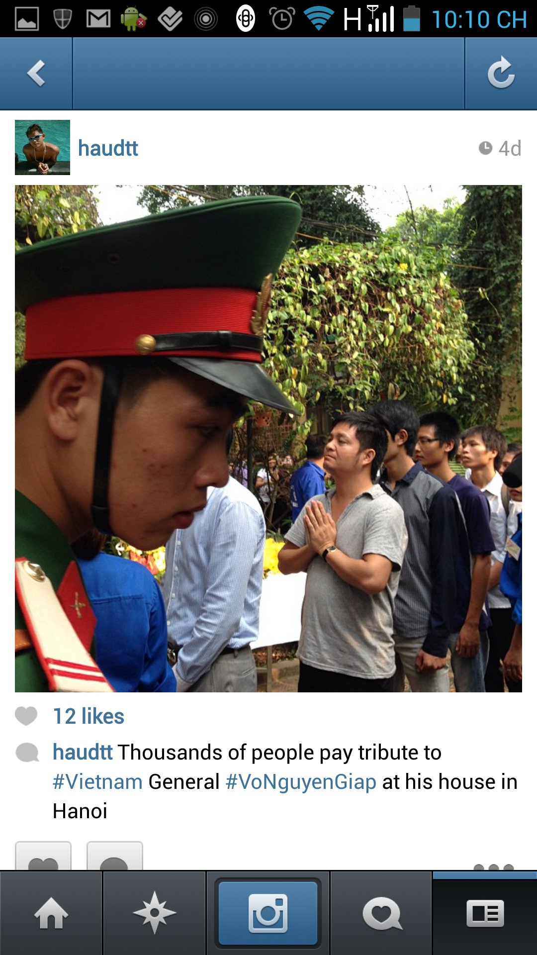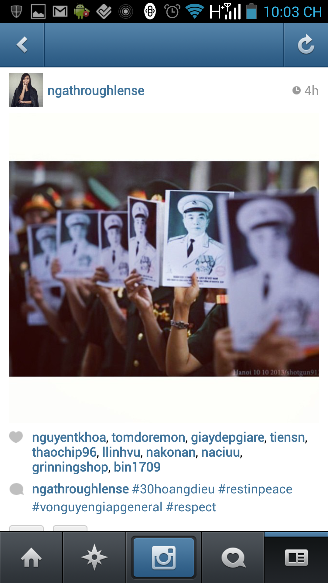 | Không chụp ảnh sự kiện, nhưng nhiều nickname vẫn bày tỏ tình cảm của mình thông qua những bức ảnh nổi tiếng về tướng Giáp. |