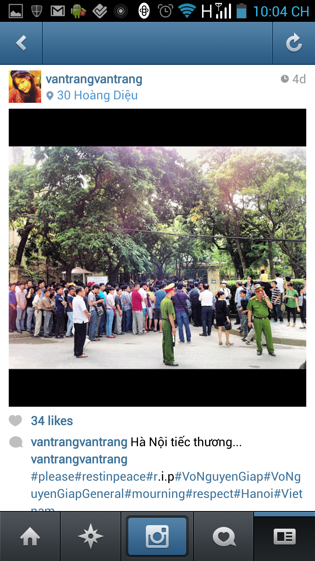 | Thành viên Vantrangvantrang chia sẻ ảnh chụp đoàn người xếp hàng bên ngoài nhà Đại tướng ở số 30, Hoàng Diệu. |