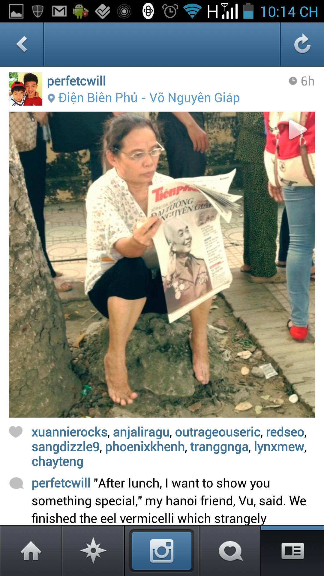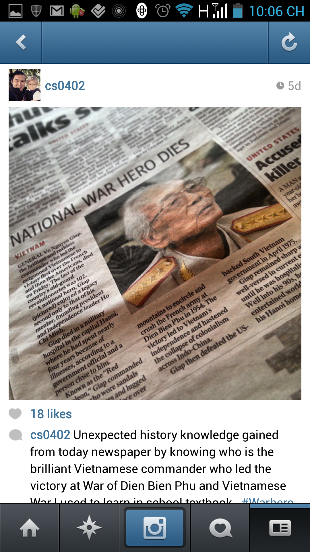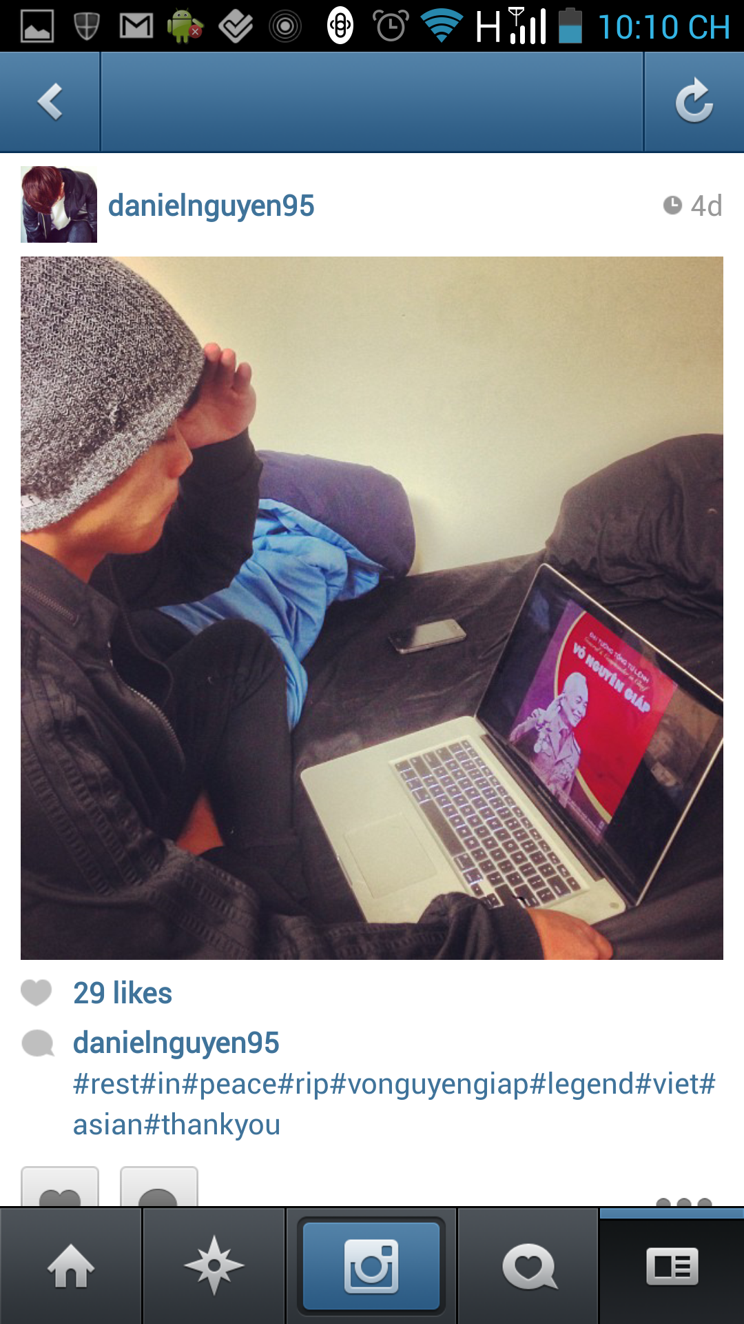 | Một du học sinh VN tại nước ngoài đọc thông tin về Đại tướng Võ Nguyên Giáp. |