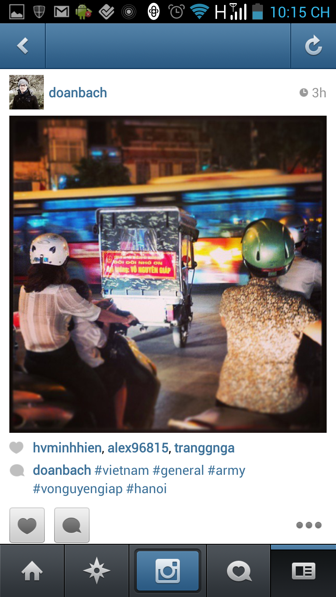 | Tài khoản Ngathroughlense đăng một bức ảnh ghi lại cảnh các chiến sĩ nâng cao di ảnh Đại tướng Võ Nguyên Giáp tại Hà Nội. |