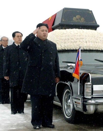 Kim Jong Un bên lĩnh cữu cha Kim Jong Il hồi tháng 12/2011. Người chú thất sủng Jang Song Thaek đi phía sau Kim Jong Un trong sự kiện này. Ngày 19/11/2011, hai ngày sau khi Kim Jong Il qua đời, Ban chấp hành Trung ương Đảng Lao động Triều Tiên công bố "Thư gửi toàn thể đảng viên, quan binh quân đội nhân dân và nhân dân", yêu cầu toàn thể đảng viên, thành viên của Quân đội Nhân dân và nhân dân "trung thành với sự lãnh đạo của đồng chí Kim Jong Un tôn kính". Các phương tiện truyền thông Triều Tiên ngay sau đó gọi Kim Jong Un là "người kế thừa vĩ đại". Ngày 24/12, Kim Jong Un nhận chức vụ Tổng tư lệnh tối cao của quân đội nhân dân Triều Tiên. Ảnh: Reuters/KCNA.
