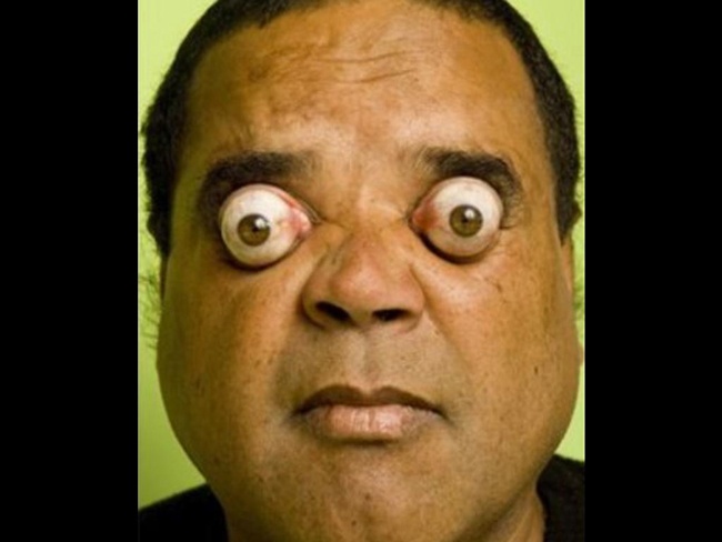 | Những lúc bình thường, anh có thể giữ nguyên trạng thái gương mặt nhưng nếu muốn, đôi mắt của anh có thể trồi ra tới 95%. |