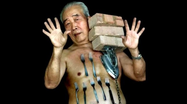 | Ông Liew Thow Lin (70 tuổi, người Malaysia) có khả năng hút dính tất cả các vật nặng bằng sắt và giữ chúng trên người trong vòng vài giờ đồng hồ. |