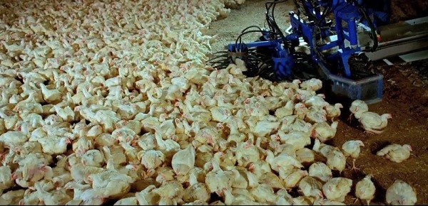 | Sau công tác chọn giống kỹ lưỡng, gà được nuôi trong những chuồng quy mô lớn, lên tới hàng chục ngàn con. Chúng được cho ăn cám, các loại thức ăn giúp lớn nhanh và tiêm phòng các bệnh thông thường. Đặc biệt, gà được “thu hoạch” bằng một cỗ máy kỳ lạ. Một đầu máy có những trục quay lớn giúp “bắt” gà, đầu còn lại nối tới những chiếc thùng nhựa đựng gà. |