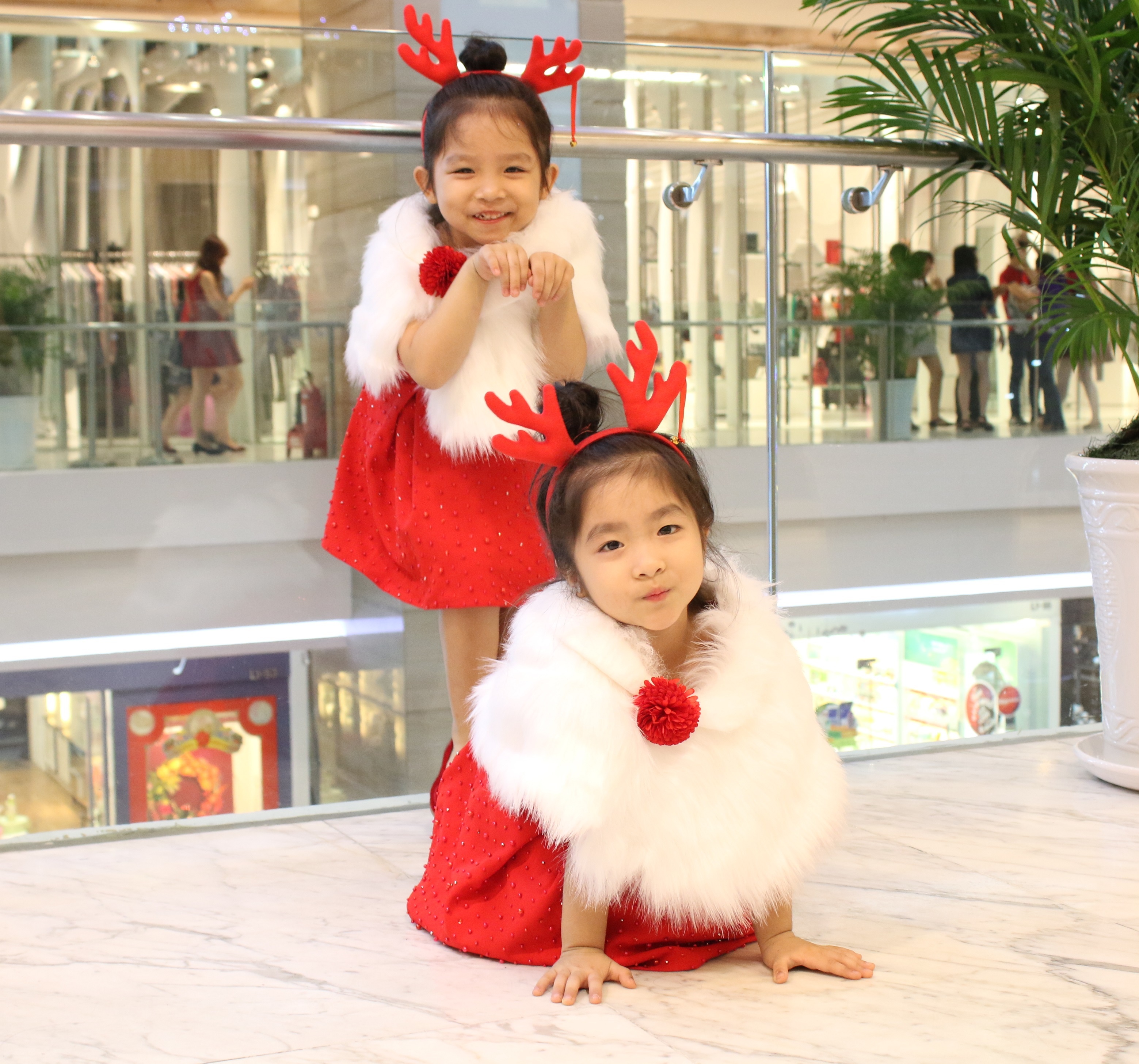 | Hai bé nhắng nhít tạo dáng trước ống kính. |