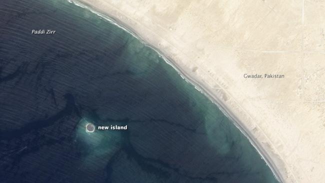 | “Độ sâu của đáy biển quanh đảo mới dao động từ 15 đến 20 m. Đáy biển trong khu vực này bằng phẳng, nhưng độ dốc ở đây lại thay đổi khá đột ngột”, nhà địa chất biển Asif Inam của Viện Hải dương Quốc gia Pakistan nói với NASA. Ảnh: NASA |