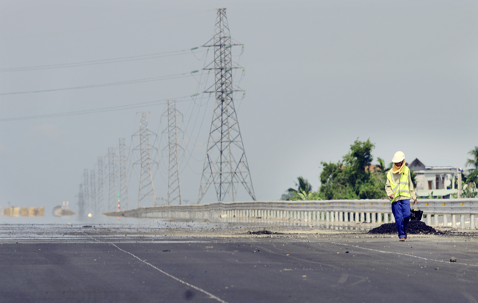 Khu vực đường gom hai bên cơ bản được hoàn thành.