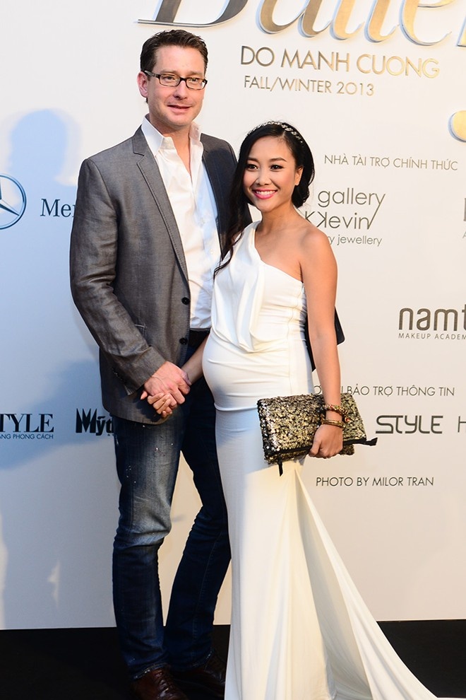| Ốc Thanh Vân tăng cân khá nhiều trong thời gian bầu bí. Tuy nhiên, cô vẫn rất tự tin và xinh đẹp khi cùng ông xã tham gia sự kiện. |