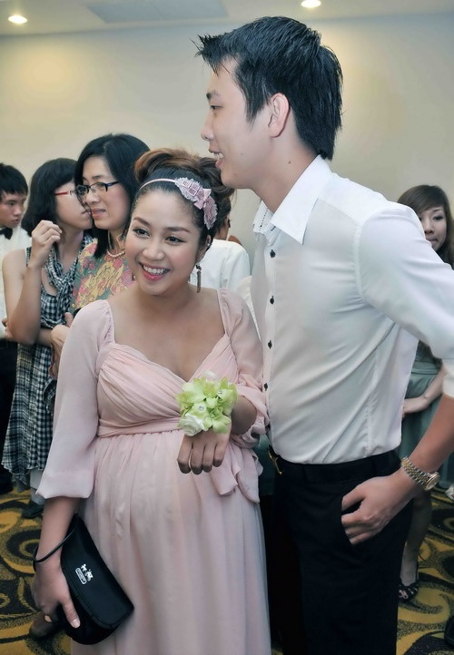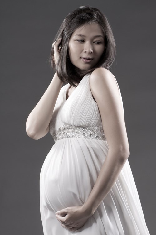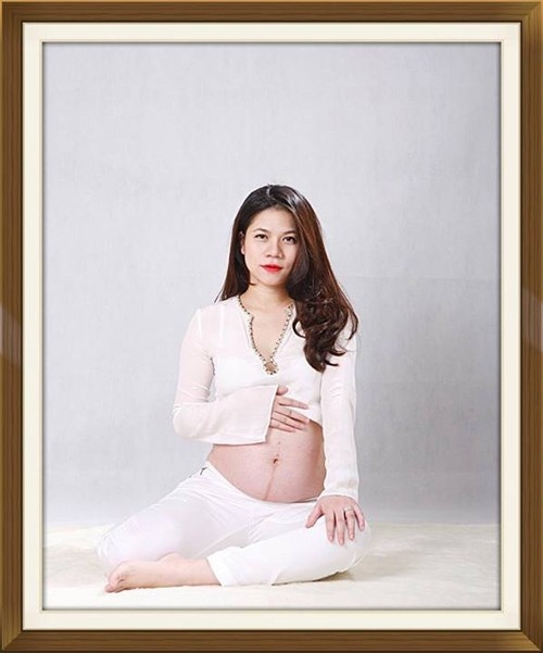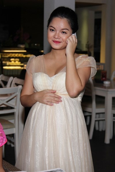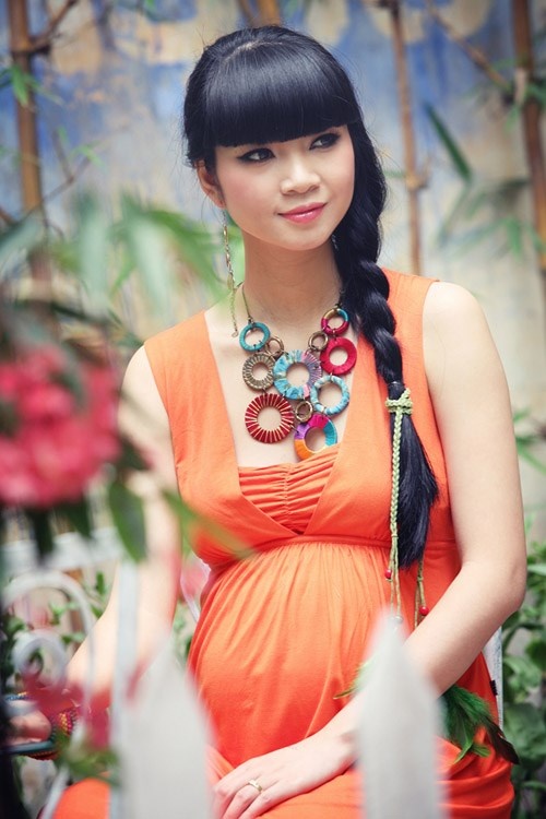 | Bà bầu Thúy Vinh nữ tính hơn hẳn khi lên chức mẹ. |