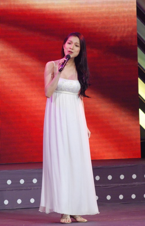 | Nữ ca sĩ Mỹ Dzung tự tin khoe bụng bầu. |