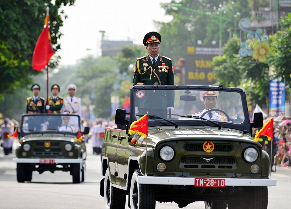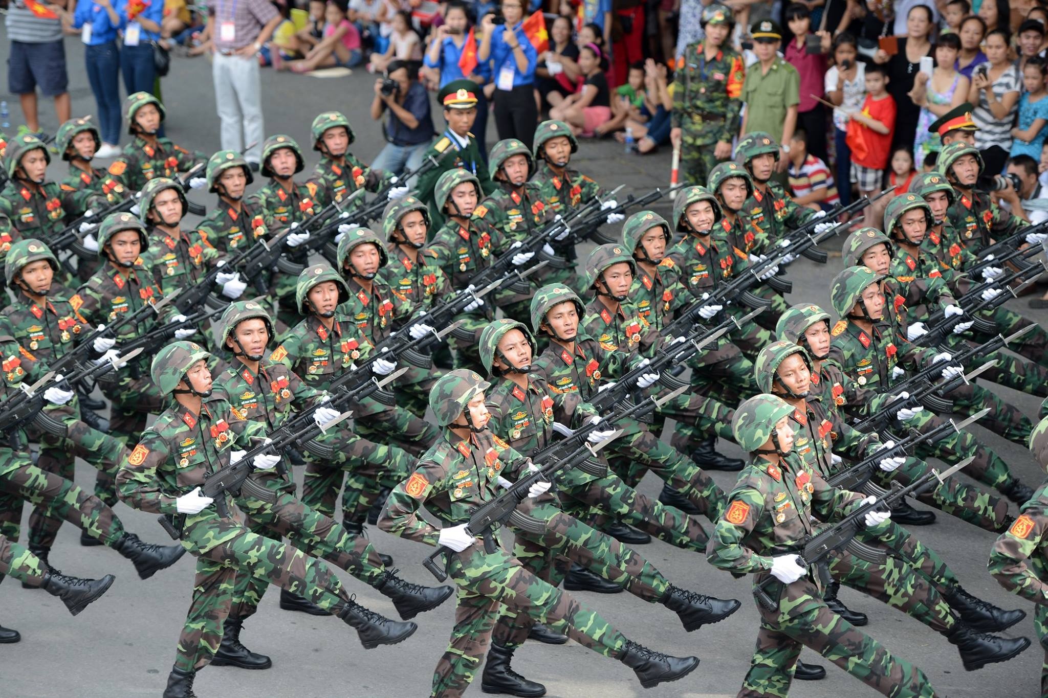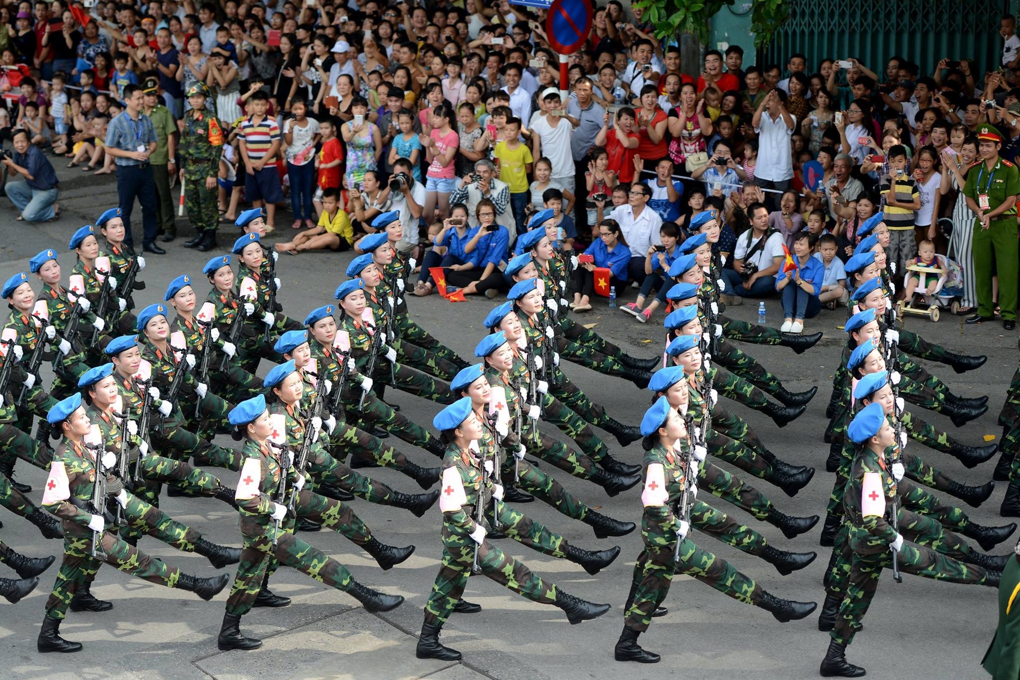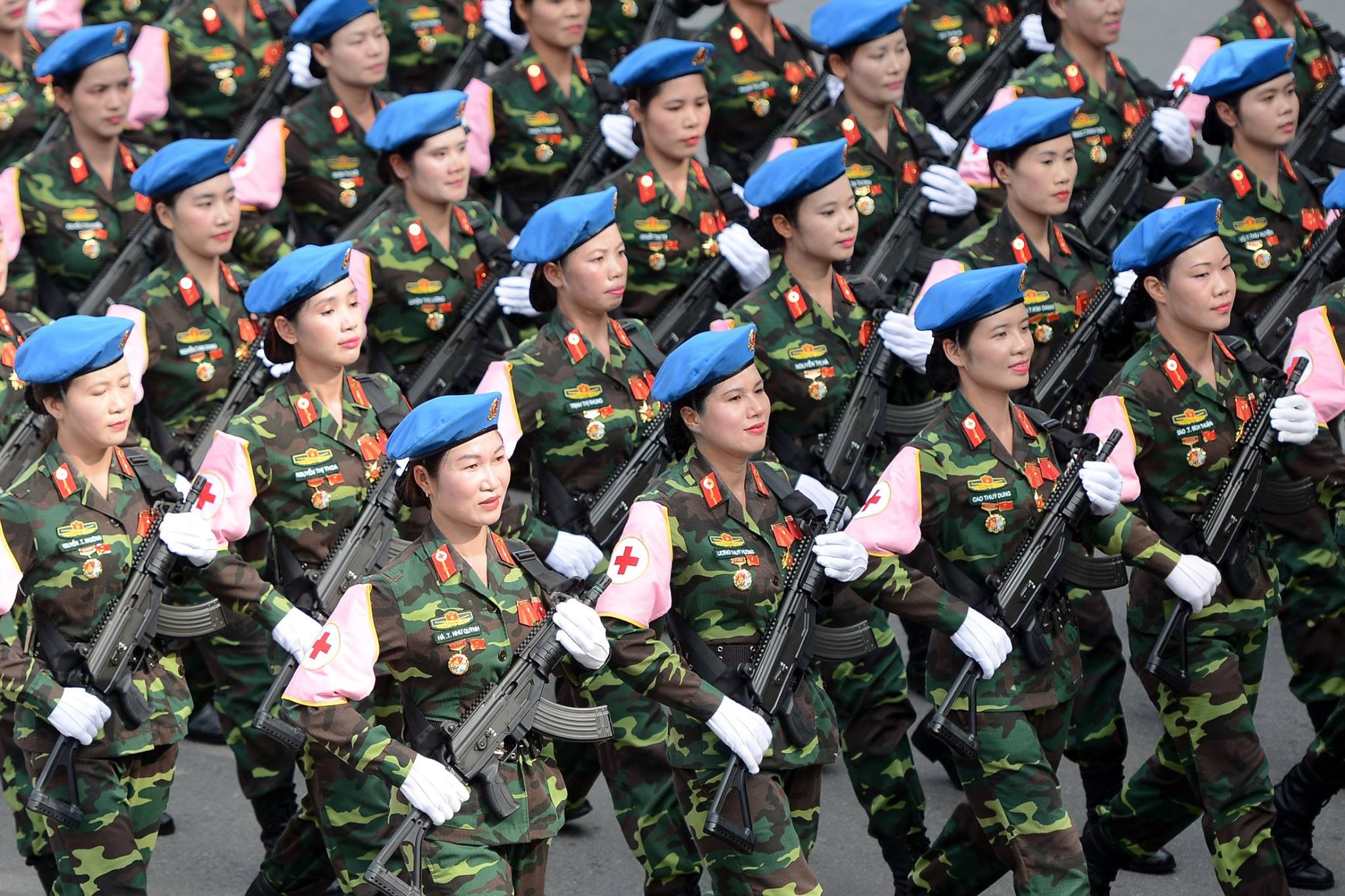 | Các nữ chiến sĩ Quân y - những thầy thuốc chiến sĩ - hùng dũng diễu trên đường phố. Ảnh: Anh Tuấn. |