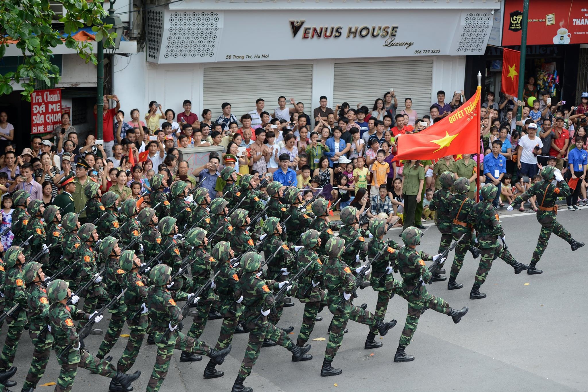 | Binh chủng đặc công trên phố Kim Mã. Ảnh: Lê Hiếu. |