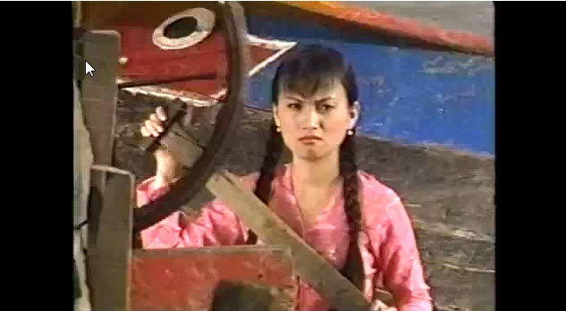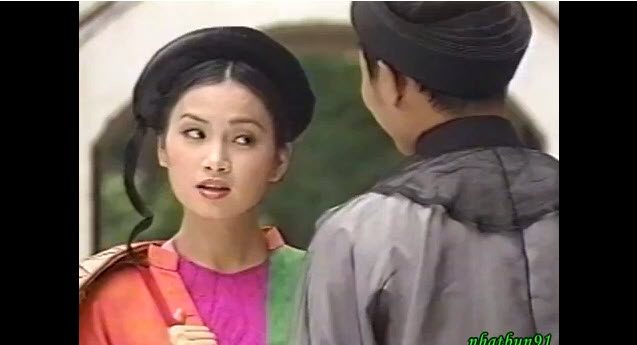 | Kết hợp cùng Quang Linh trong Gió đánh đò đưa, cô hóa thân thành cô gái miền Bắc dịu dàng với áo tứ thân, nón quai thao. |