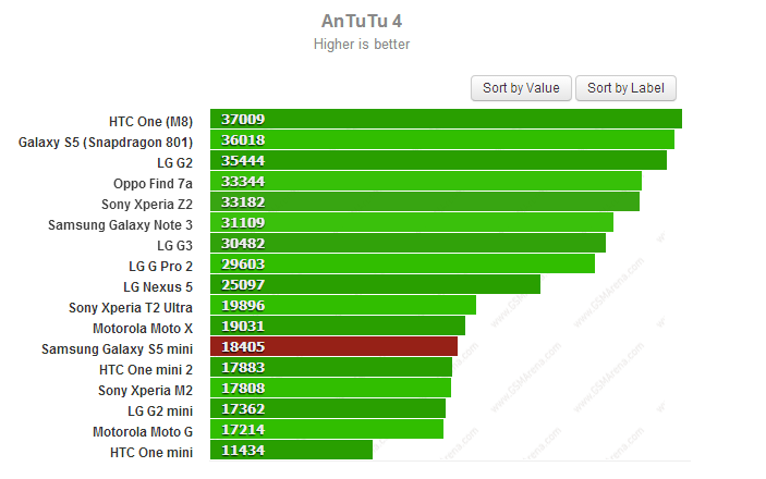 | Điểm số Benchmark của Galaxy S5 mini vượt trội hơn hẳn so với các phiên bản mini đến từ các đối thủ. |