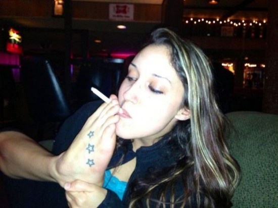 | Hút thuốc bằng chân cũng là một nghệ thuật. |