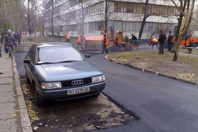 | Cái tội đỗ xe khi công nhân vẽ đường. |
