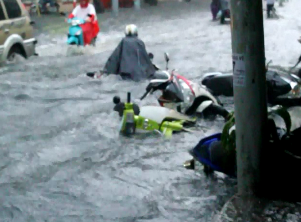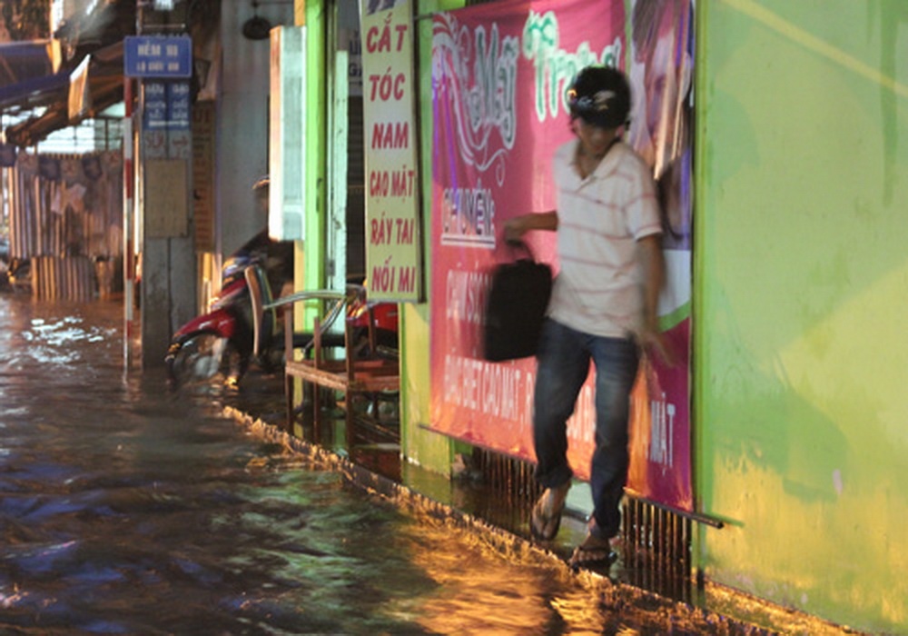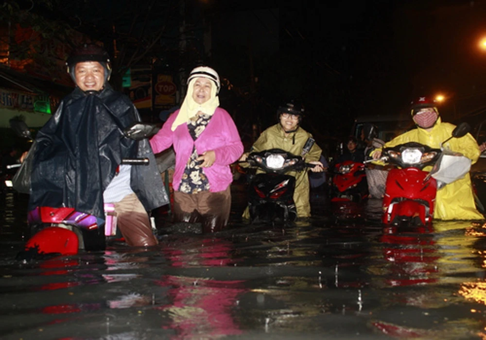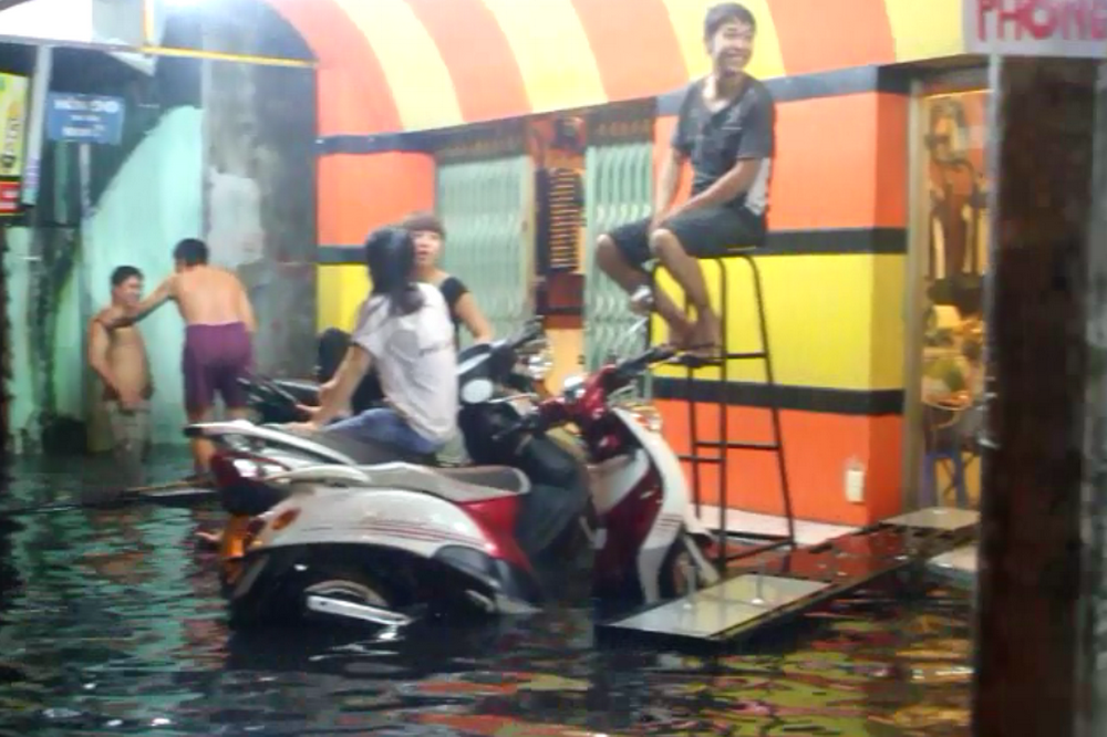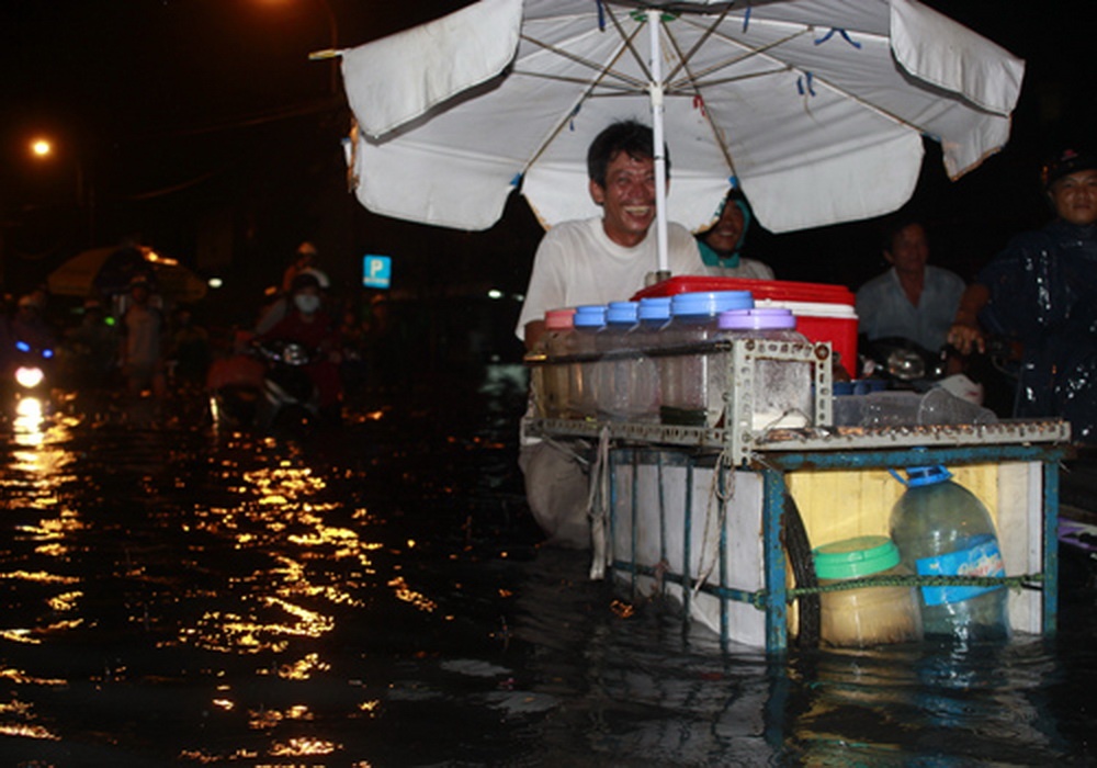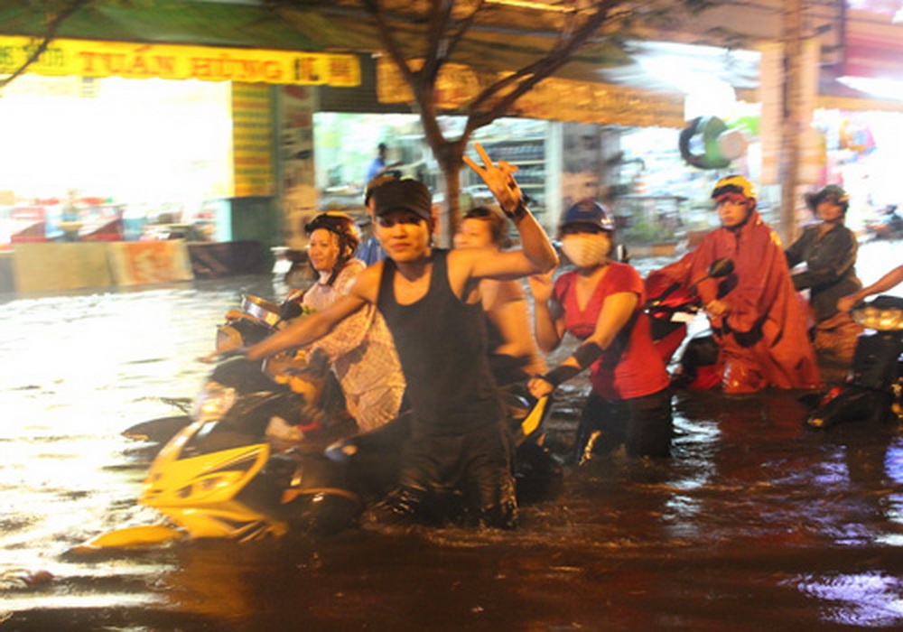 Người Sài Gòn thường xuyên phải chống chọi với nước ngập trên nhiều tuyến phố nhưng trong những hoàn cảnh đó, họ vẫn vô tư xem nó như một phần tạo nên một Sài Gòn riêng.
