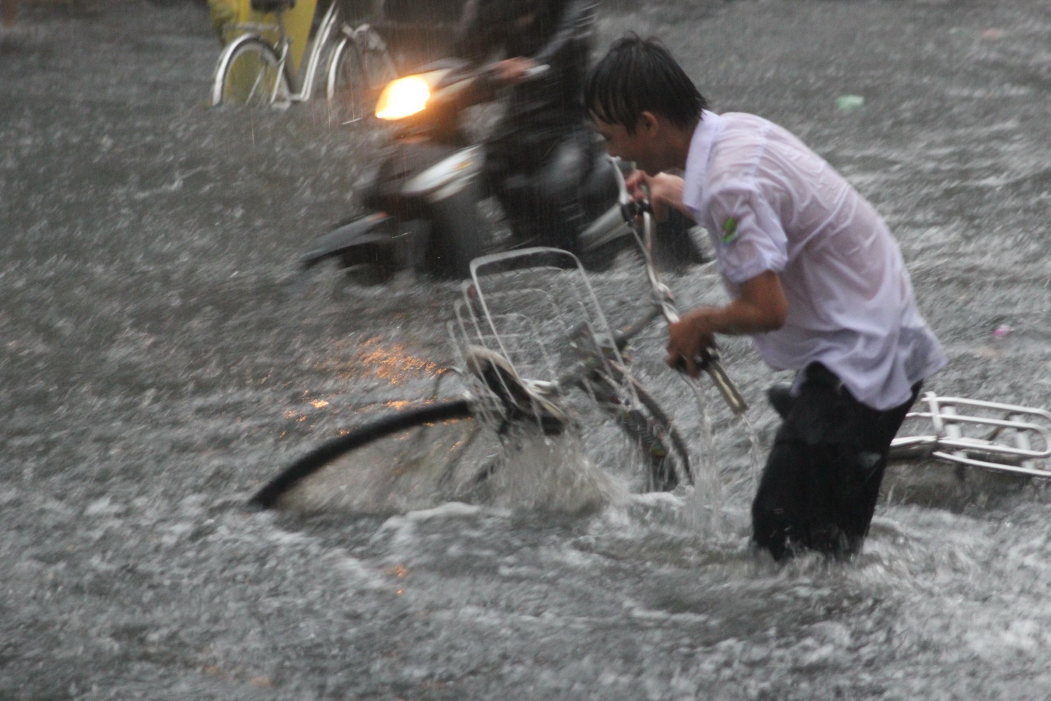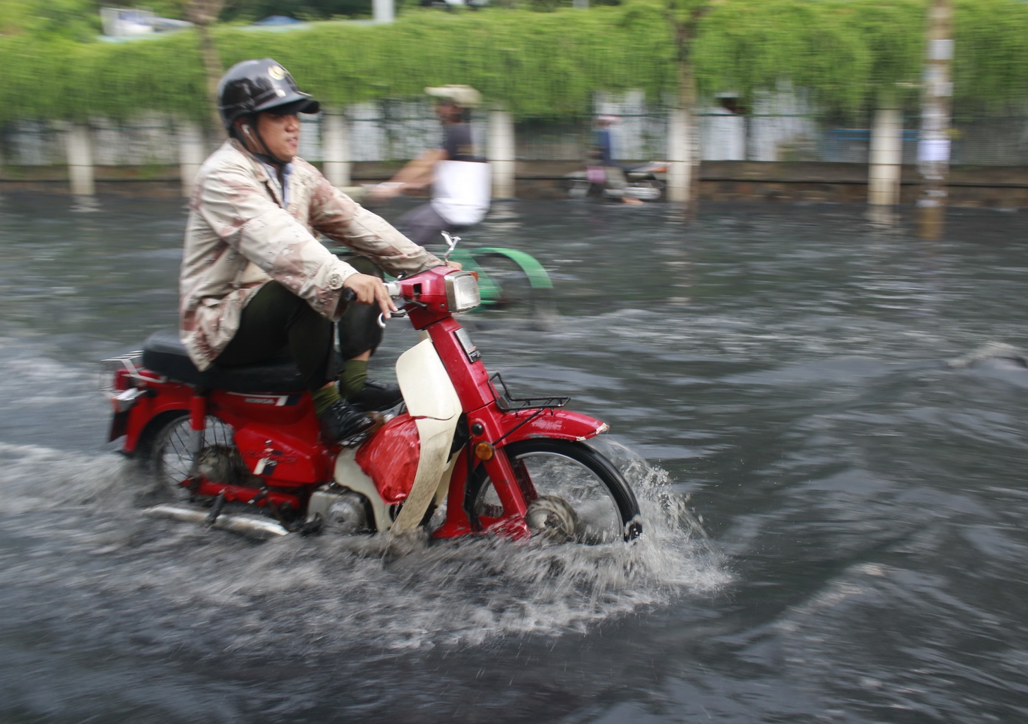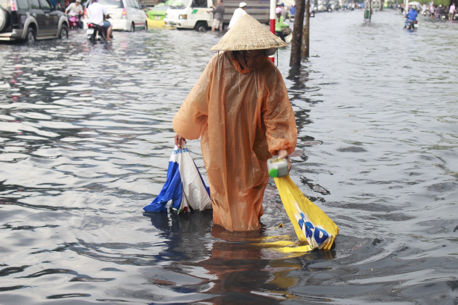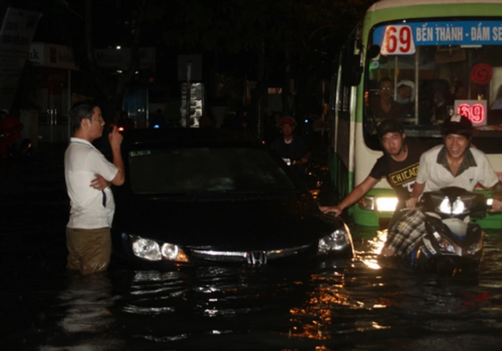 Người Sài Gòn thường xuyên phải chống chọi với nước ngập trên nhiều tuyến phố nhưng trong những hoàn cảnh đó, họ vẫn vô tư xem nó như một phần tạo nên một Sài Gòn riêng.
