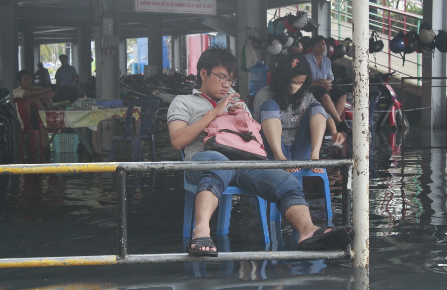 | Vô tư khi "nước ngập đến chân". |