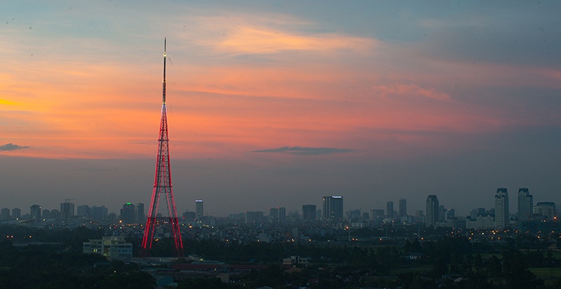 Nhiều cơ quan, ban ngành cũng đã chuyển trụ sở về khu vực Từ Liêm làm việc. Trong ảnh là cột phát sóng thuộc Trung tâm kỹ thuật, Đài truyền hình Hà Nội lung linh trong ánh hoàng hôn.