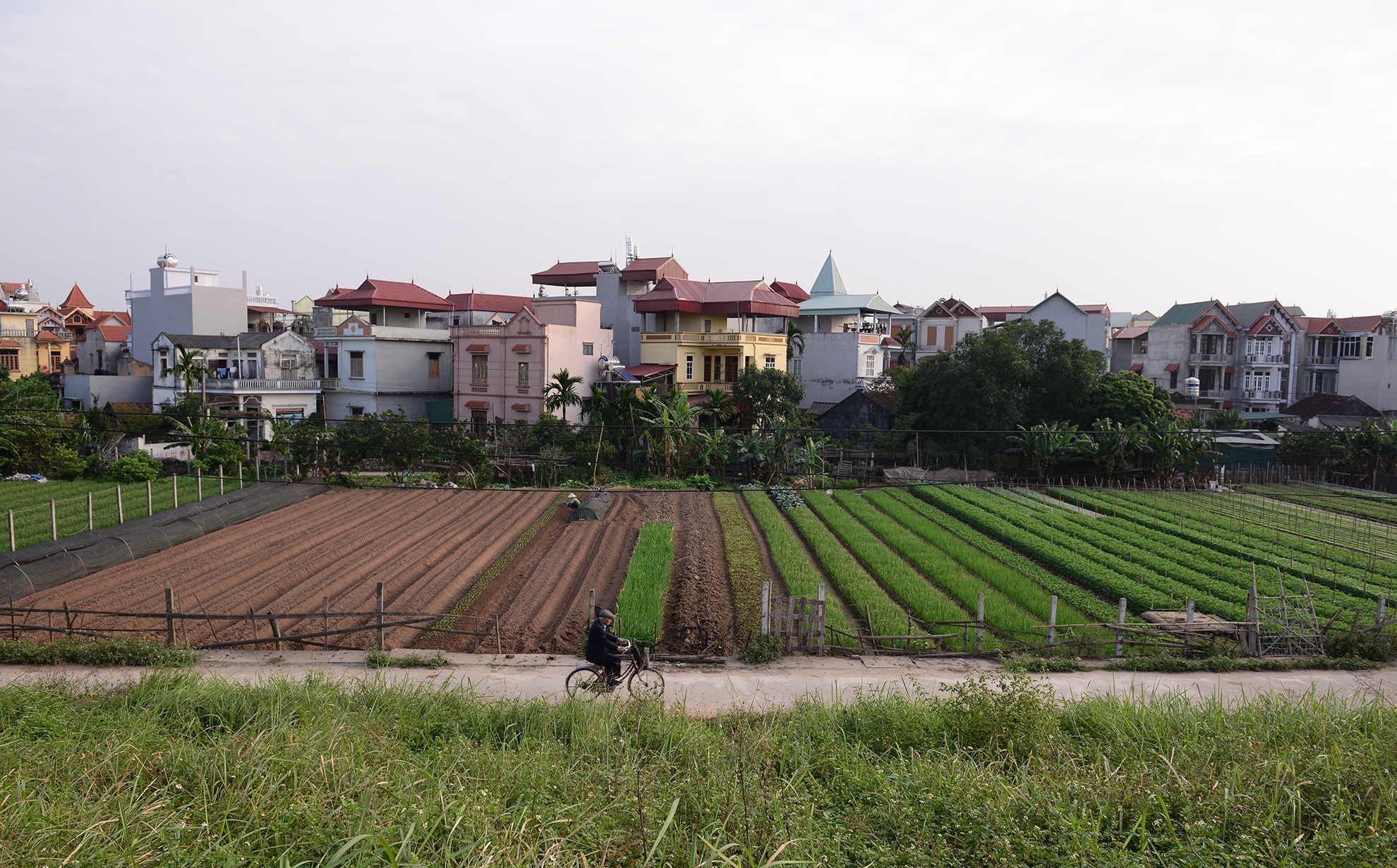 Diện tích đất nông nghiệp ngày càng bị thu hẹp và chia cắt, các khu công nghiệp, khu đô thị mới từng bước hình thành. Sự biến động này có những thuận lợi song cũng có những khó khăn hết sức phức tạp vì nó tác động đến tất cả các lĩnh vực kinh tế, văn hoá, xã hội, tập quán của nhân dân. Trong ảnh là một góc cánh đồng thuộc xã Trung Văn, nơi đã hình thành nhiều tòa nhà chung cư, khu đô thị mới.