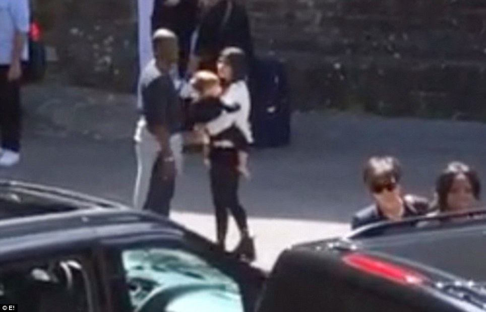 | Chị gái của Kim - Kourtney Kardashian tham dự lễ kết hôn cùng chồng và con gái nhỏ Penelope. |