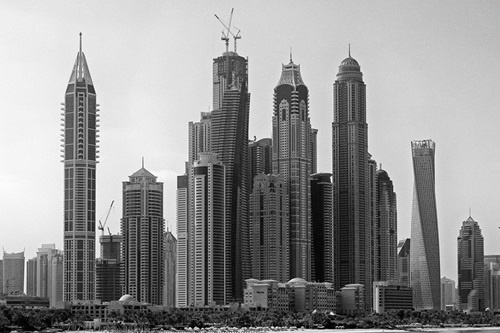 | Tại Dubai, cần cẩu cùng những tòa nhà đang xây dựng xuất hiện khắp mọi nơi. |