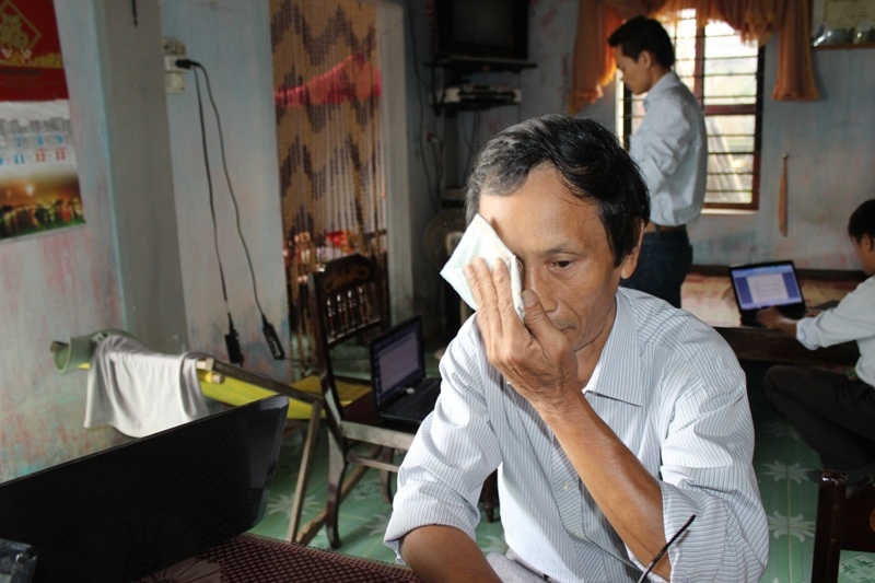 | Ông Võ Thanh Bình, 61 tuổi, cháu gọi tướng Giáp bằng bác, không cầm được dòng lệ. |