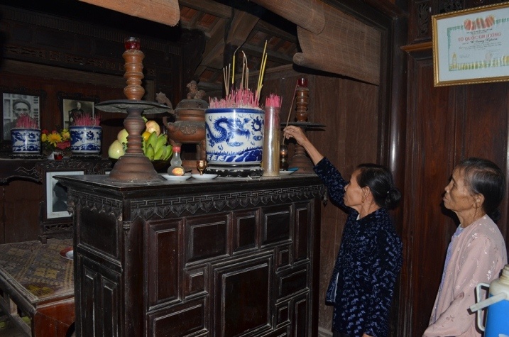 | Bà con hàng xóm đến thắp hương cho ông bà tổ tiên trong ngôi nhà của Đại tướng. |