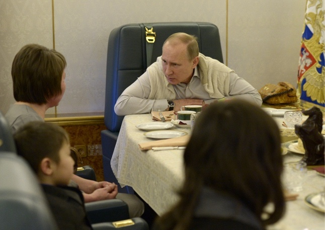 | Nhà lãnh đạo Nga trò chuyện với người dân ngay trên phi cơ năm 2003. Tổng thống Nga thường chuộng những dòng chuyên cơ nội địa. Ảnh: Itar Tass |