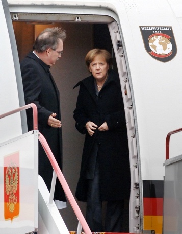| Thủ tướng Đức Angela Merkel xuất hiện trên phi cơ trong một chuyến thăm Nga năm 2008. Ảnh: Itar Tass |